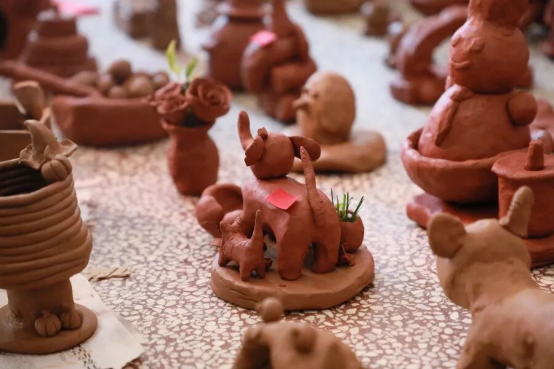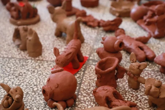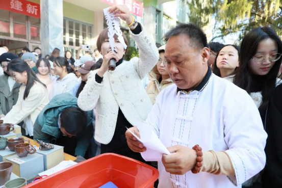 活动伊始,省级土陶非遗传承人、杨氏土陶第九代传人杨追老师,县级傣族剪纸非遗传承人王国明老师依次分享传承故事。杨追老师细数土陶技艺的传承与创新,其作品斩获多个奖项、登上央视舞台的故事,让师生领略到碗窑土陶的匠心底蕴;王国明老师深耕傣族剪纸数十载,以剪刀为笔、红纸为纸活化民间故事的经历,展现出傣族剪纸的灵动与厚重。
