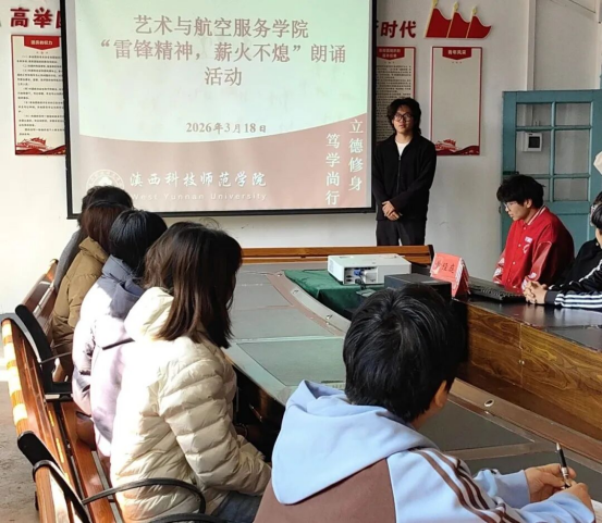 为传承和弘扬新时代雷锋精神,引导青年学子感悟奉献力量,3月18日,艺术与航空服务学院团总支顺利举办“雷锋精神,薪火不熄”主题朗诵活动。