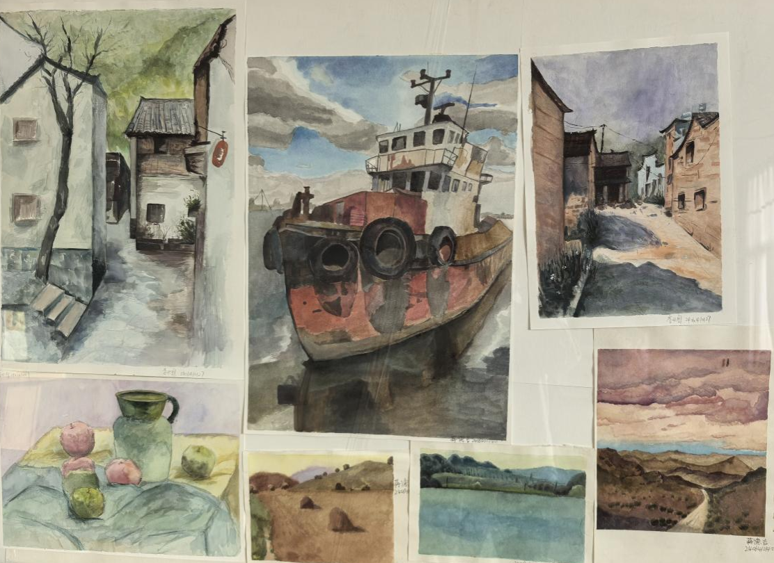 本次结课展旨在全面呈现美术学专业实践课程的教学成果,集中展示了美术学专业学生本学期的优秀作品,参展作品题材多元、风格鲜明,既体现了学子们对传统艺术文脉的深入理解与扎实传承,亦展现了其立足当代语境,在艺术语言探索与视觉表达创新方面的积极尝试。