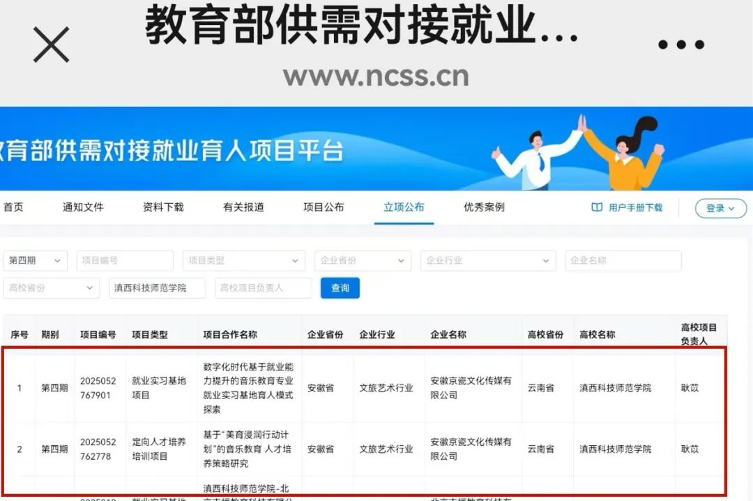 二、耿苡老师《数字化时代基于就业能力提升的音乐教育专业就业实习基地育人模式探索》、《基于“美育浸润行动计划”的音乐教育 人才培养策略研究》获“教育部供需对接就业育人项目”立项。