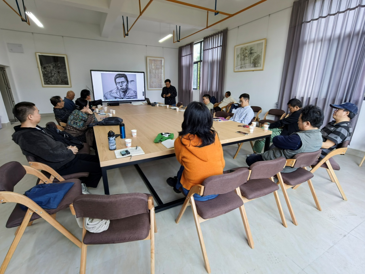 研讨会围绕“造型基础课程教学目标及内容”展开深入探讨,首先由任课教师进行了课程设计说课展示。刘勇教授以《素描基础课程优化设计》为题,提出“观察—表现—应用”三阶教学模式,结合师范生特点增设“素描人像结构分析”“课堂示范教案设计”等模块,强化基础技能与教学实践能力衔接。李永辉副教授展示“素描头像”教学案例,引导学生以身边亲人为表现对象,细致观察面部特征,运用线条与阴影刻画神韵,使教学贴近生活,提升学生绘画技巧的同时,增进对家人的情感理解与表达。
