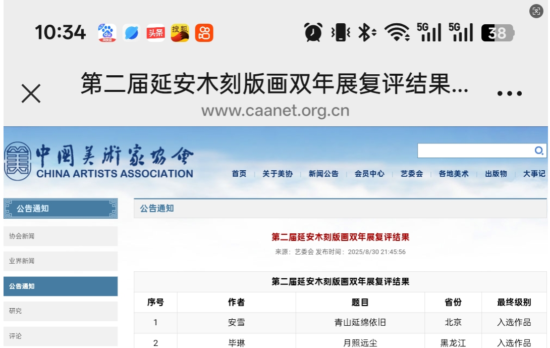 喜讯!艺术与航空服务学院学生张潇月作品入选第二届延安木刻版画双年展