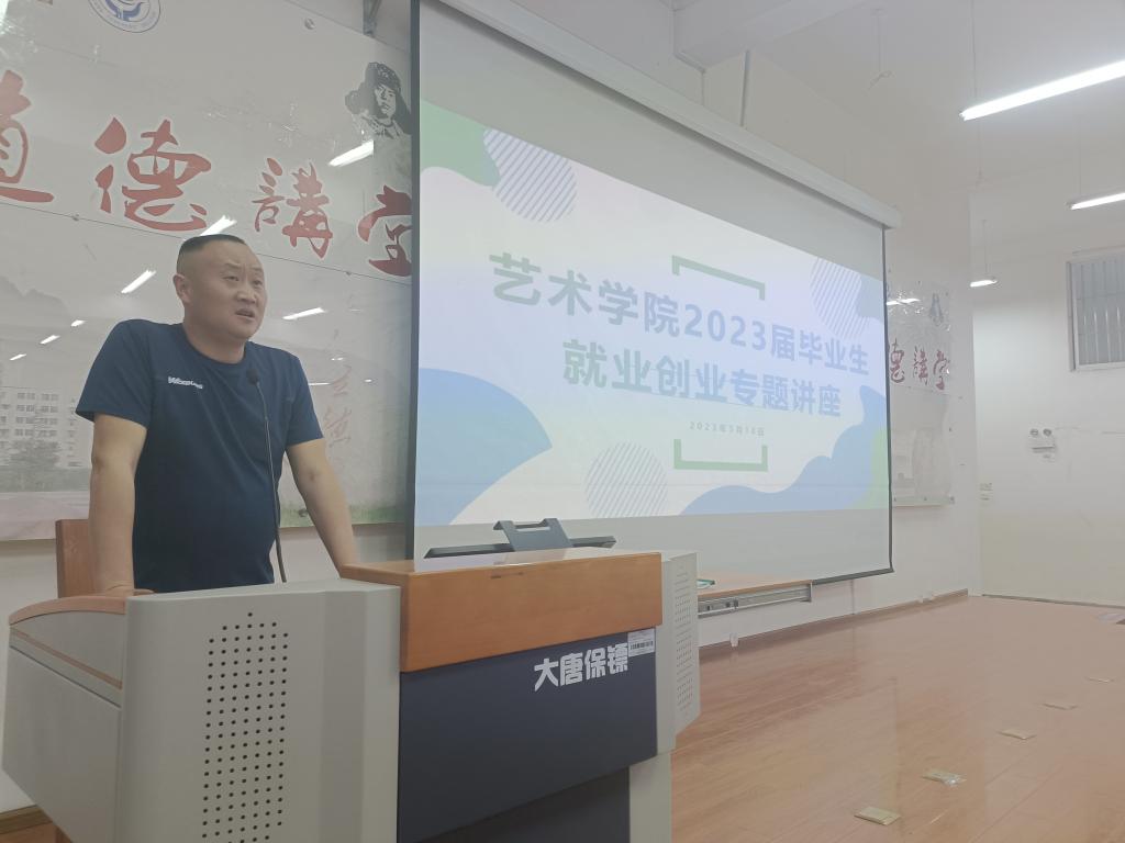 为深入学习贯彻党的二十大报告精神,认真落实学校就业创业有关工作要求,做好2023届毕业生就业创业动员及安排工作,引导毕业生树立正确的就业观念,提高就业积极性和主动性,促进学院2023届毕业生充分就业、高质量就业,以实际行动助力学校本科教学工作合格评估,3月10日,艺术学院在博雅楼215开展了2023届毕业生就业创业专题讲座。艺术学院党总支书记,负责就业工作辅导员以及全体2023届毕业生参加了本次会议,会议由学生事务办公室主任主持。