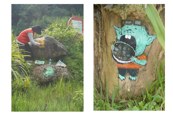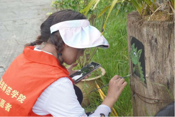 通过实地考察,了解了当地的村容村貌,,发展历史以及村民们对环境美化提升的需求,在指导老师的带领下实践队员们经过热烈的讨论和设计后,开始进行壁画、小动物、风景小品等的绘制,绘画过程中吸引了很多村民驻足观看,并且还进行了一些交流。同学们团结协作,默契配合,克服了烈日和短时降雨的恶劣天气,表现出了极高的积极性与绘画的专业水准,展现了当代青年大学生们吃苦耐劳的精神。