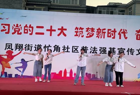 为深入学习贯彻习近平新时代中国特色社会主义思想,学习领会习近平总书记致云南大学建校100周年贺信精神,贯彻落实党的二十大精神,高质量开展学习贯彻习近平新时代中国特色社会主义思想主题教育,充分发挥高校育人和服务地方社区功能。2023年4月27日,在艺术学院党总支的组织带领下,音乐专业学生团员及入党积极分子深入凤翔街道忙角社区开展了“学习党的二十大,筑梦新时代,奋进新征程”普法强基宣传文艺汇演。