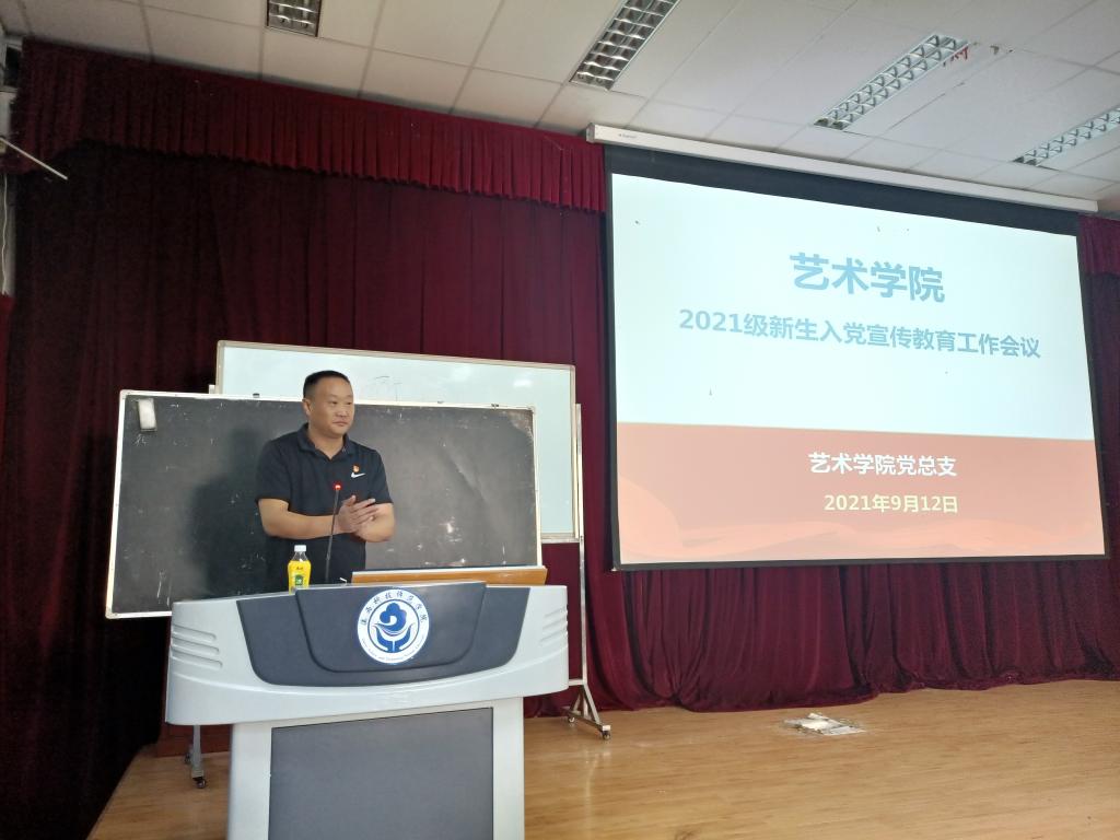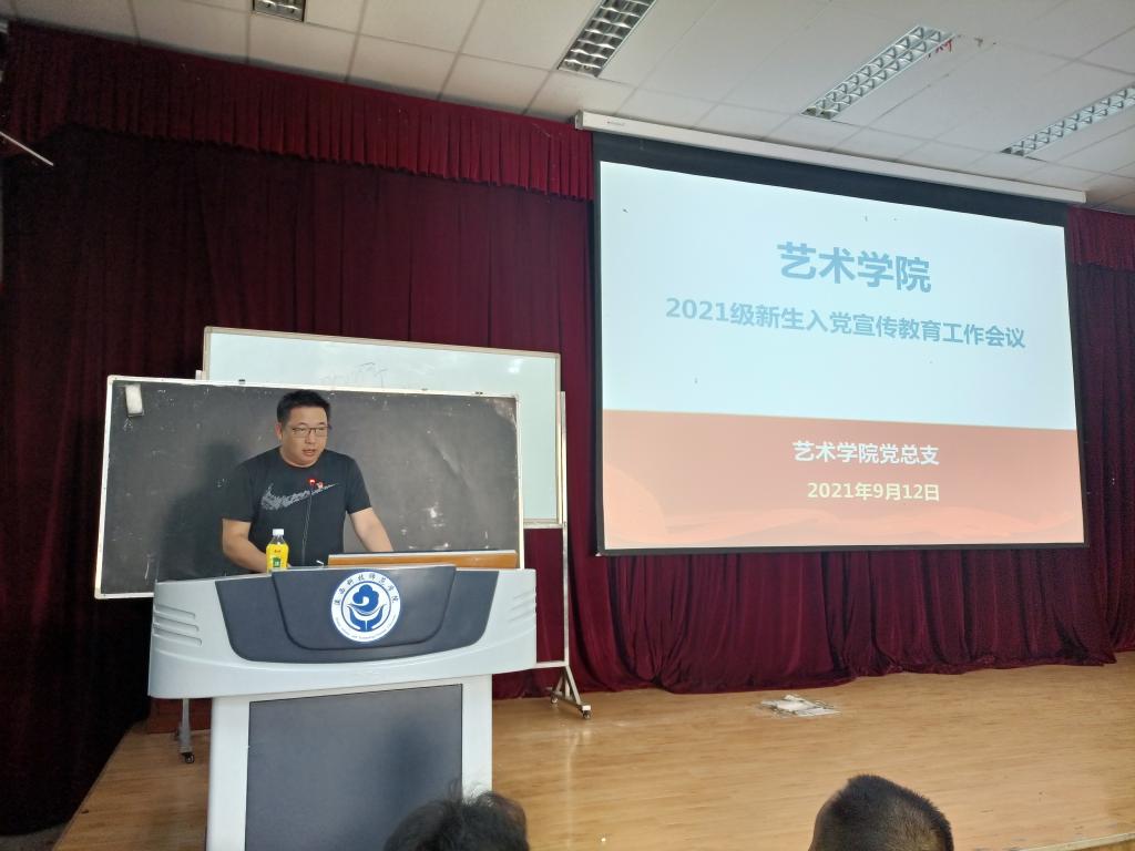 为了让2021级新生更加了解入党基本流程和相关规章制度,提高新生对党的认识,端正入党动机,激发加入党组织的政治热情。2021年9月12日上午,艺术学院党总支开展了新生入学教育活动之入党知识教育活动,活动由学院党总支副书记黄经庭主持。