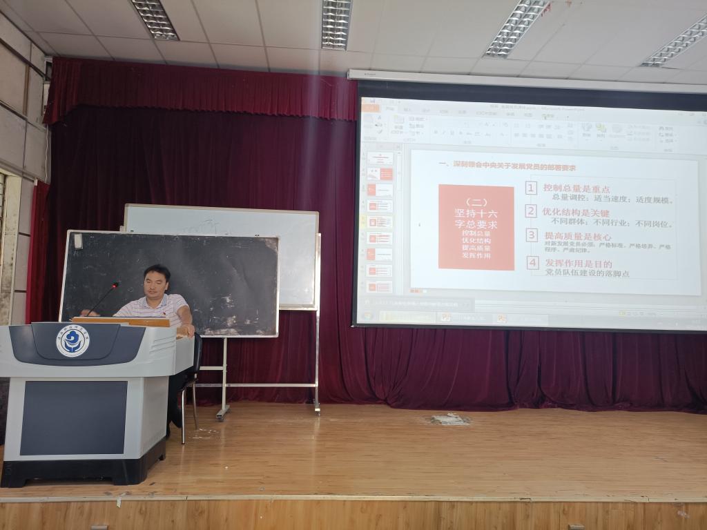 党总支专职组织员杨军同志围绕党员发展工作流程以及入党申请书的书写规范及要求等多方面进行了讲解,详细地介绍了入党所经历的各个阶段及教育和培养过程,并对入党申请书和思想汇报的撰写提出了明确的规范和要求。