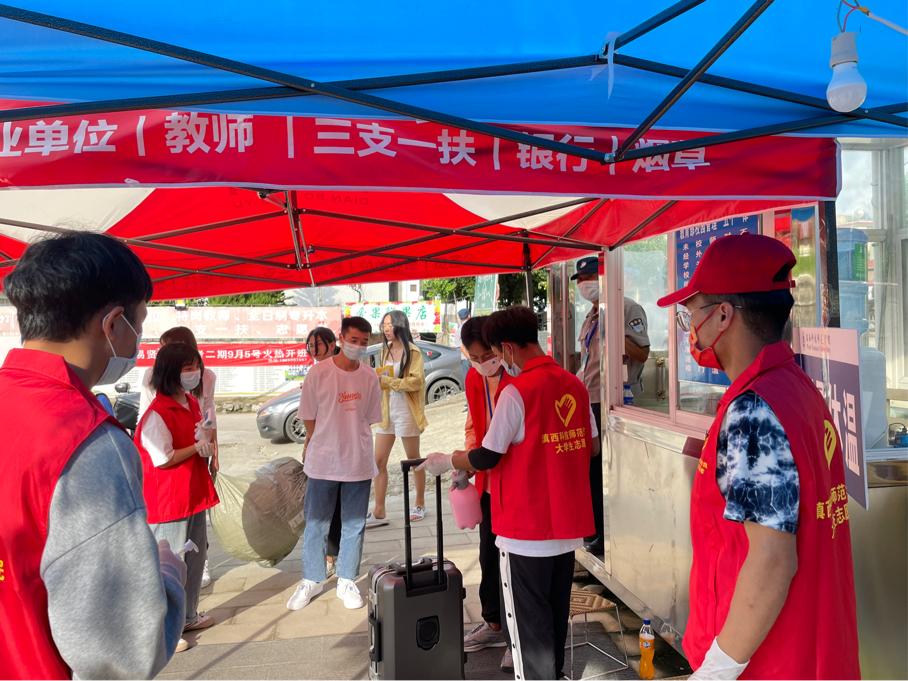 本次迎新工作中,我院的学生预备党员志愿者在学校的雅安居和下忙角两个迎新站点为新生提供测量体温、行李消毒等疫情防护工作,同时细致入微地观察新生的需求,积极与新生亲切交谈,提示新生报到注意事项,每位新生在志愿者们的引导和帮助下都独立有序地完成了报到流程。