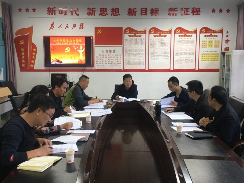 2019年11月07日下午17:00,艺术学院党总支跟据学校党委关于在“不忘初心、牢记使命”主题教育中深入开展对照党章党规找差距的部署要求组织召开了“对照党章党规找差距专题”会议,学校党委副书记李国钰同志带领第一指导组成员莅临艺术学院指导。