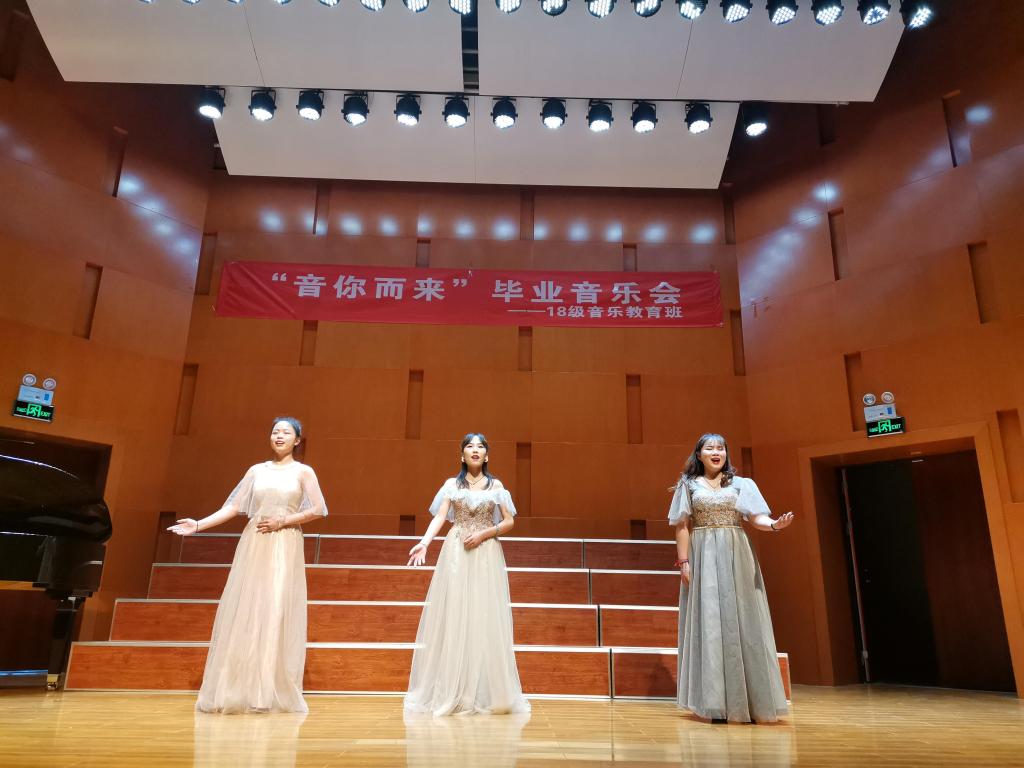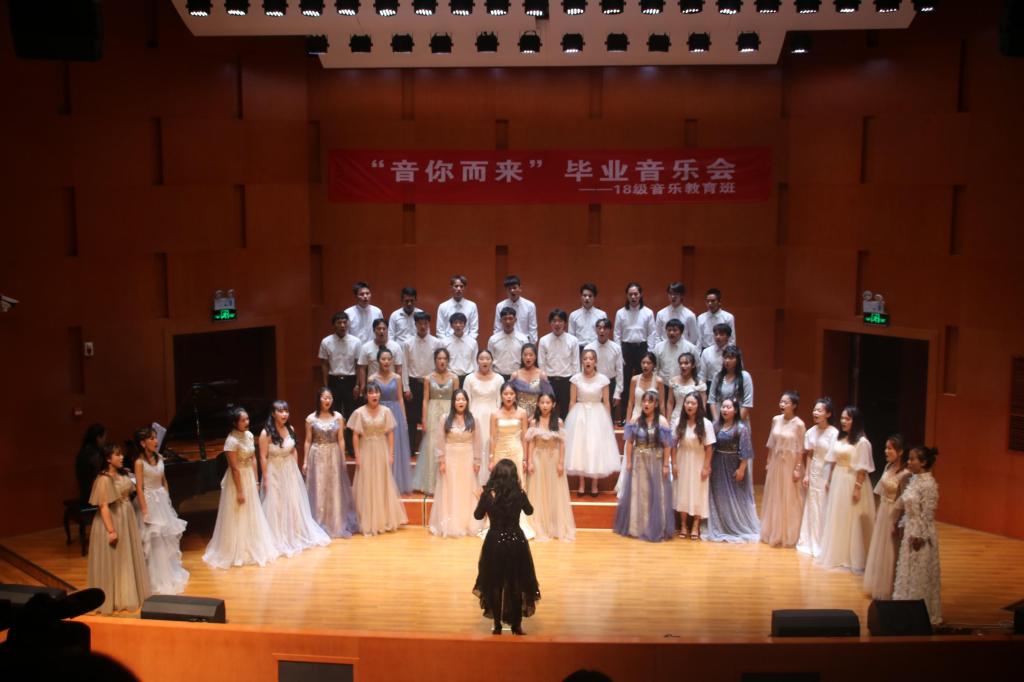 本场音乐会是2018级音乐教育班的毕业生汇报演出。音乐会共有15个节目,包括声乐独唱、重唱、音乐剧,还有钢琴独奏、联弹,以及民乐演奏、现代歌舞等,丰富多彩、别出心裁的节目充分展示了音乐教育专业学生的风采。