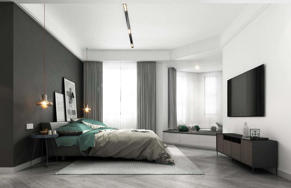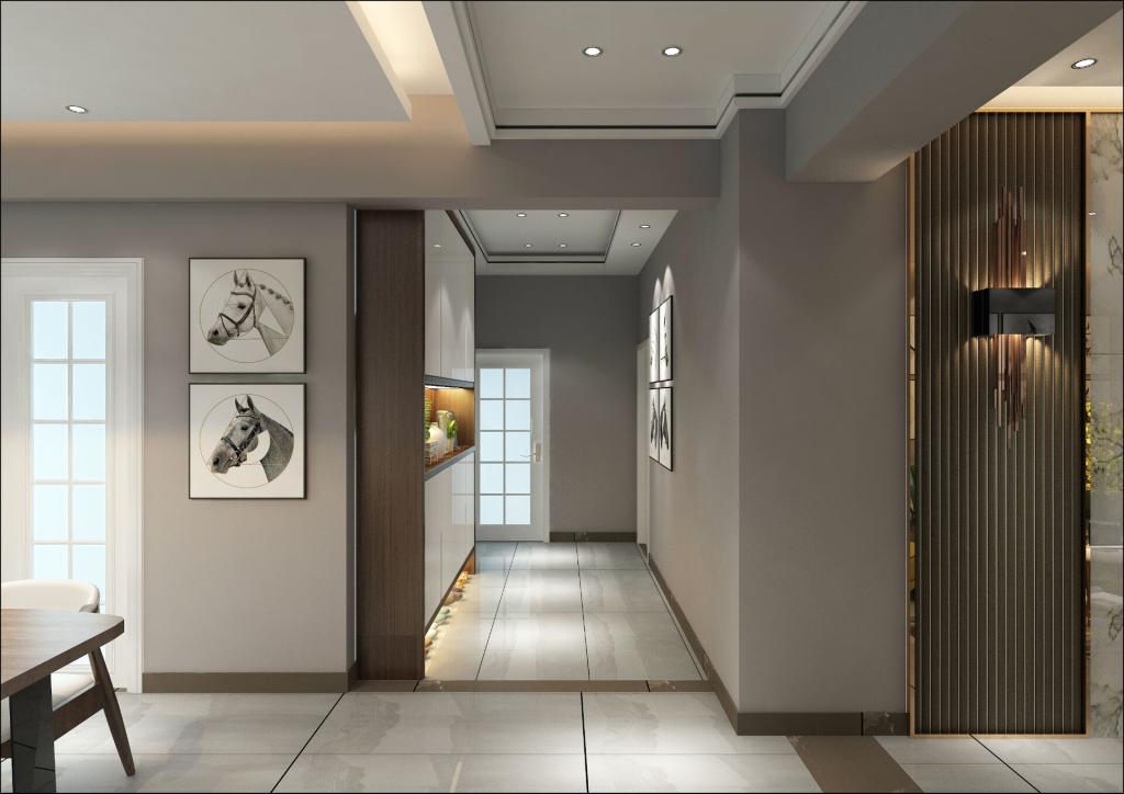 总体布局方面满足了业主的需要,通过现代材料家具乳胶漆配上一些通过现代手法改良的家具。以白色灰色为主做暖色调,使得我们的居室既有现代感又有一丝时尚感,创造一个了温馨健康的简约与现代结合的家庭环境。