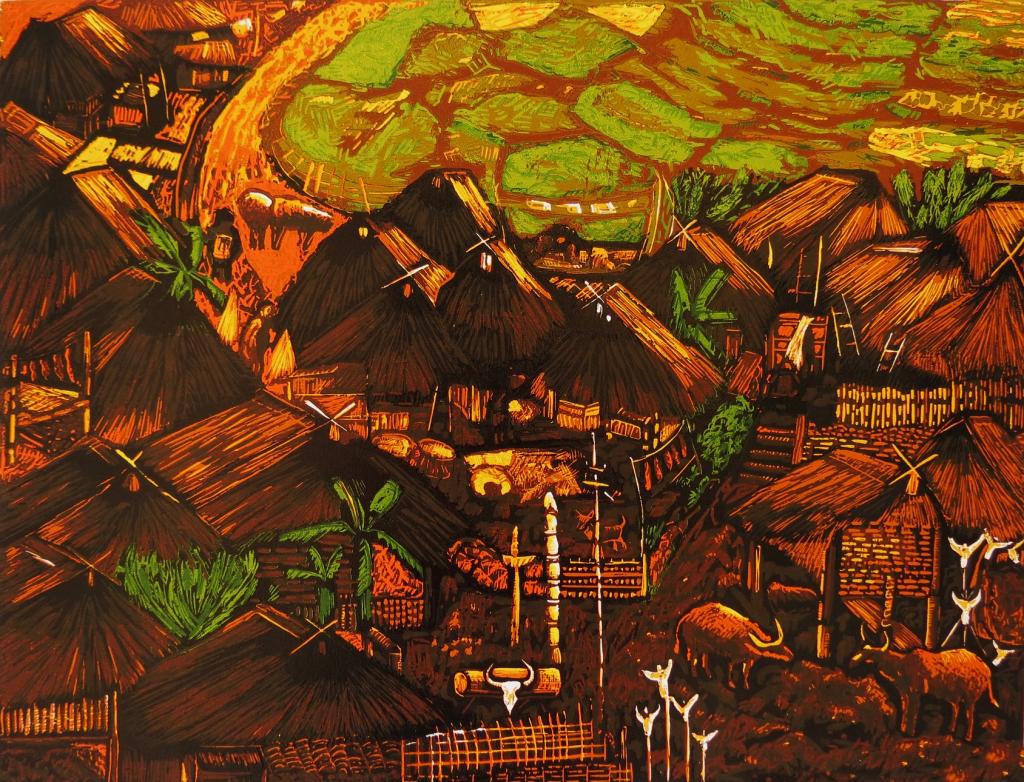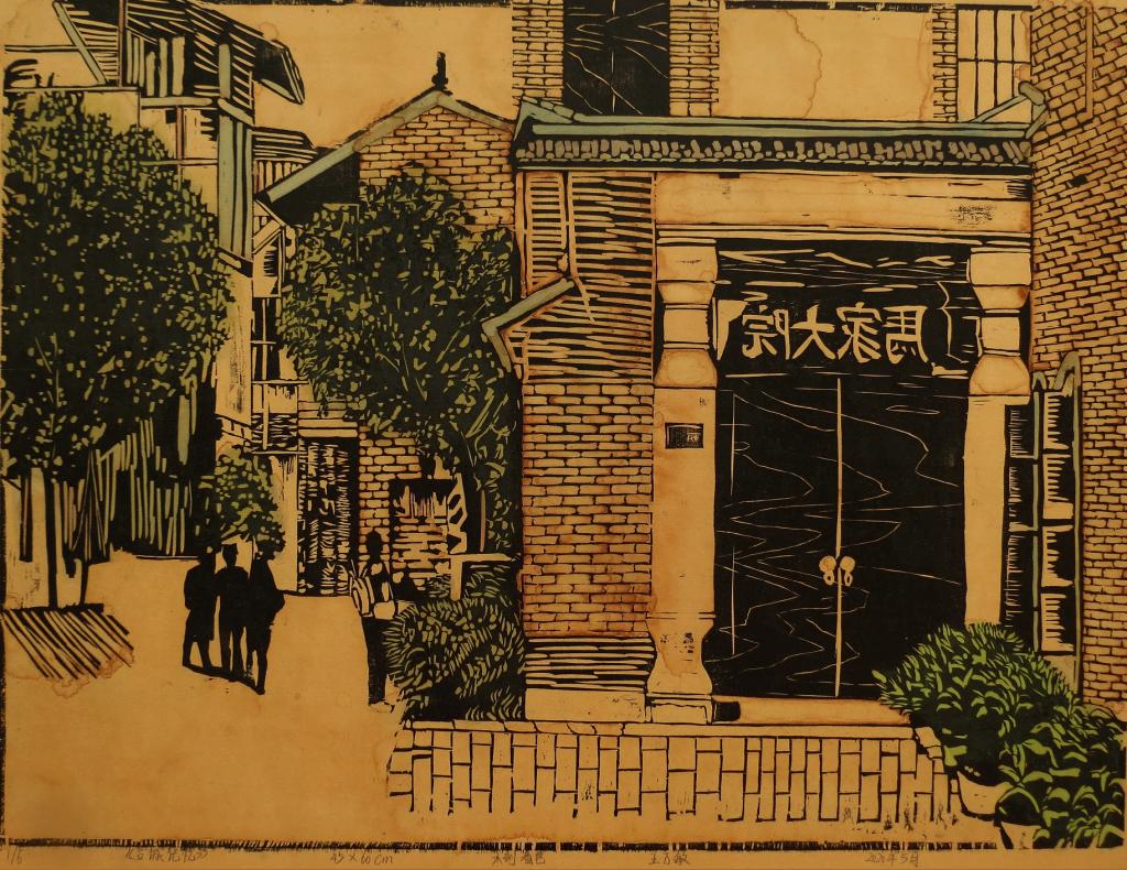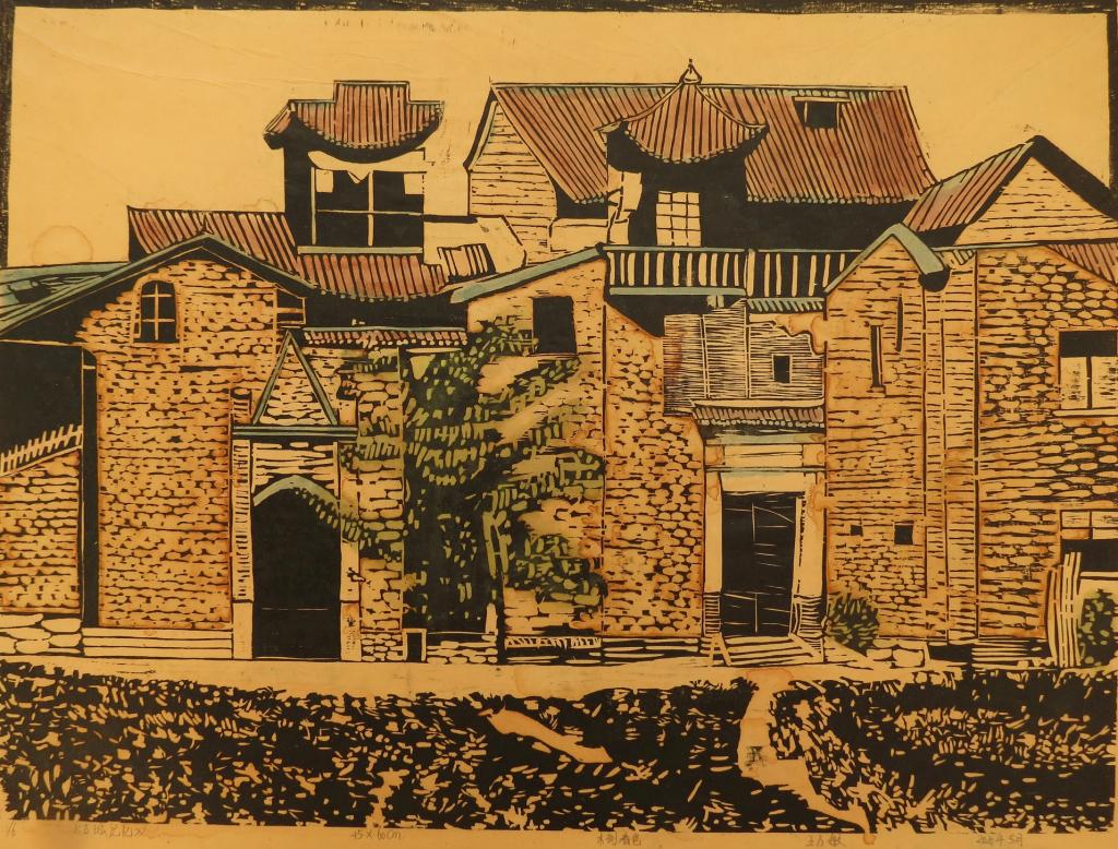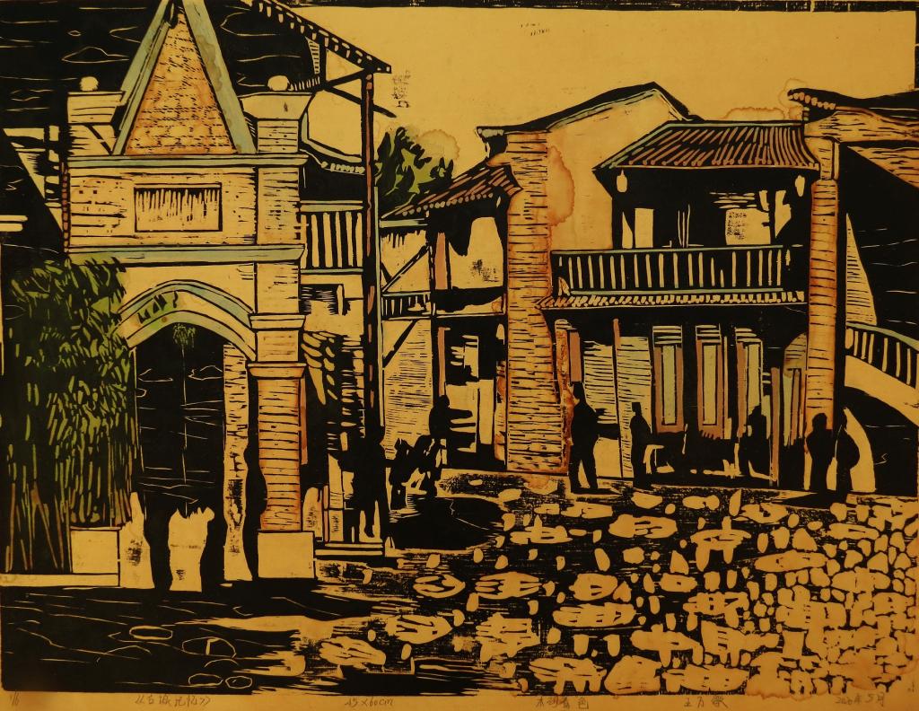 毕业作品:绝版木刻《翁丁佤寨》1幅、黑白木刻《祭》、《告庄夜市》2幅
